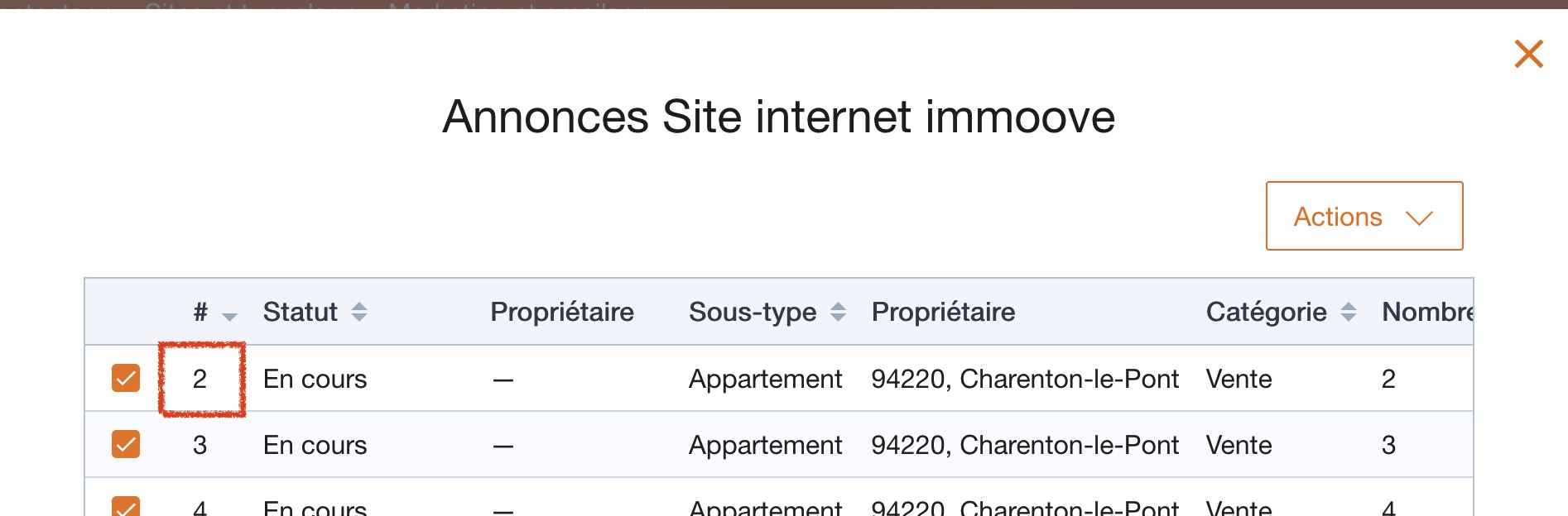 Nous avons corrigé l'affichage de la référence de l'annonce sur le tableau.
