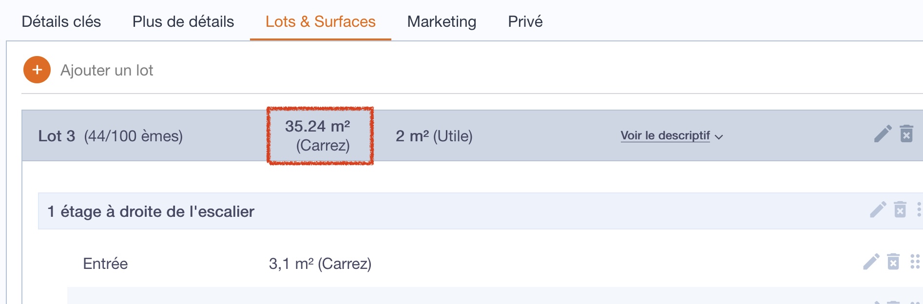Nous avons optimisé l'affichage de la surface totale des lots à 2 décimales après la virgule