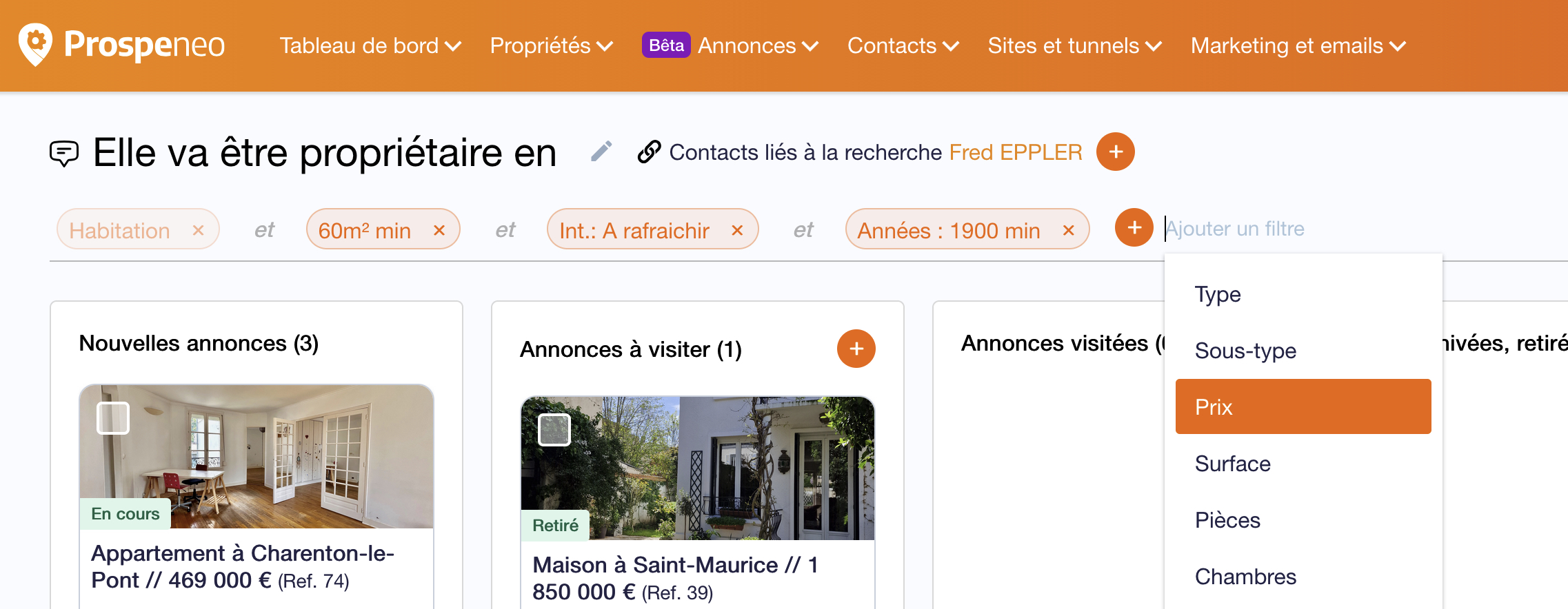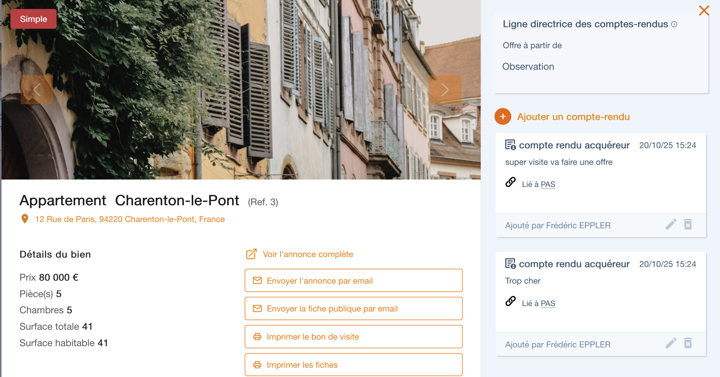 Nous avons réorganisé la popup d'une annonce pour visualiser en un clin d'oeil les informations générales à gauche et à droite tous les comptes rendus.
