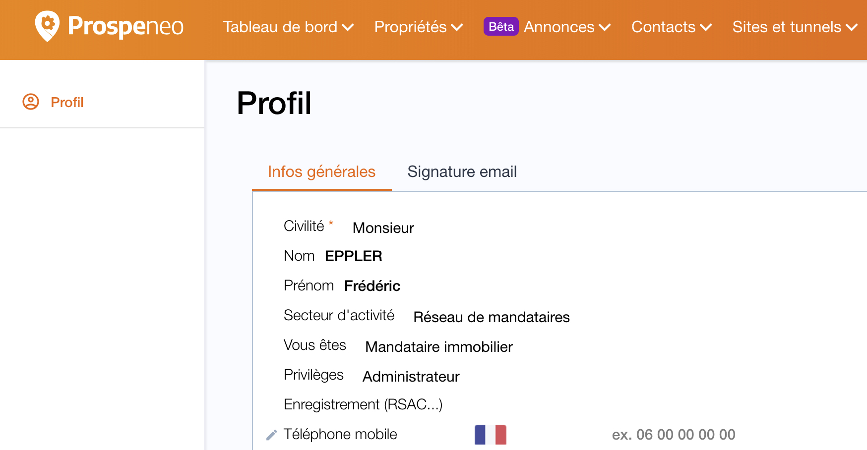 Nous avons ajouté un champ RSAC sur le profil utilisateur.